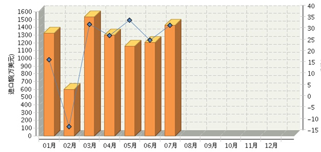 - 2016年1~7月全国食品行业进口额月度2016/9/9 9:49:49