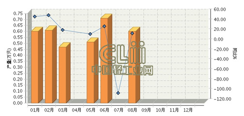 2017年1~8月,河南白炽灯泡行业累计完成产量4.11万只,同比增长9.02%。其中: 8月份完成产量0.6万只,同比增长20%。