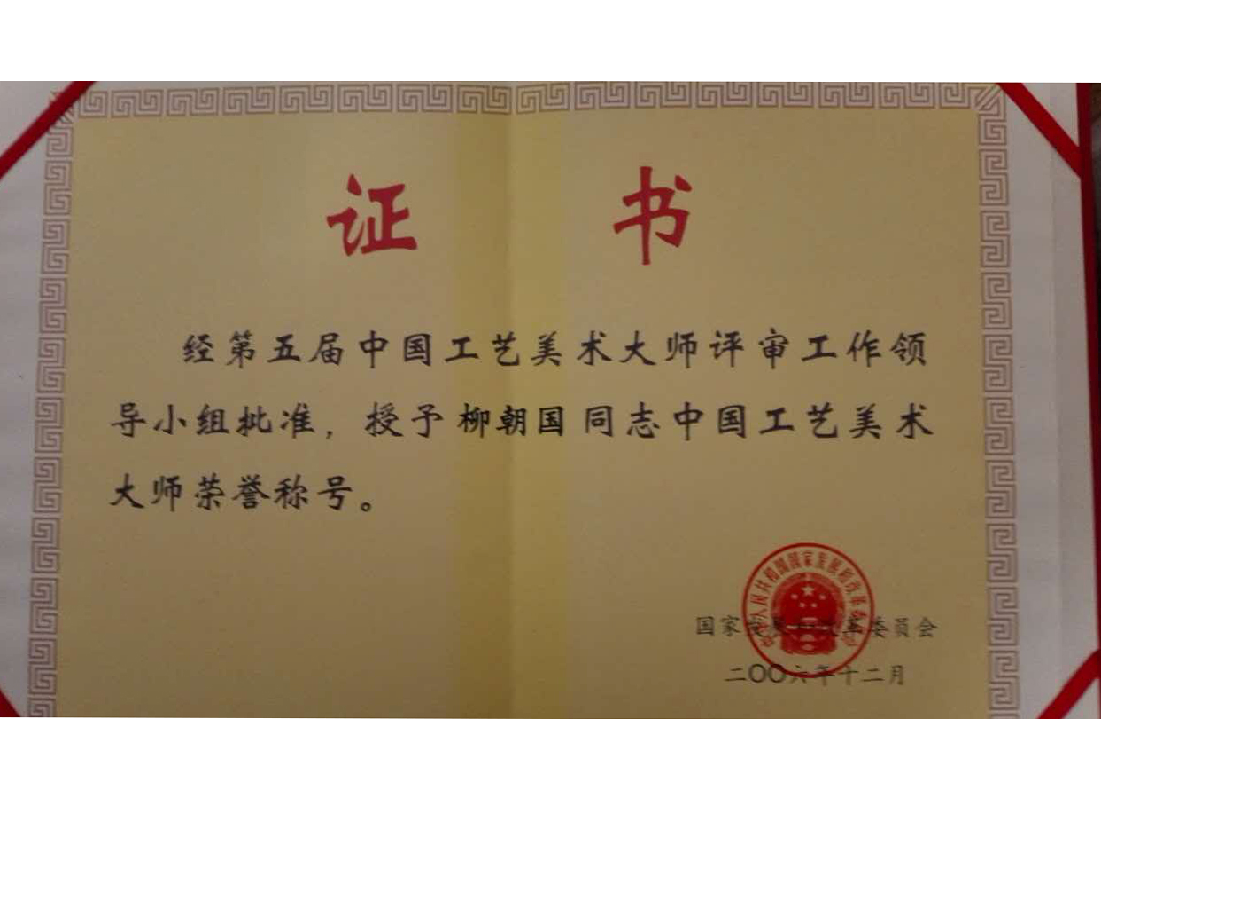 柳朝国 男,生于1945年,中国工艺美术大师,北京朝阳雍玺玉器厂厂长。