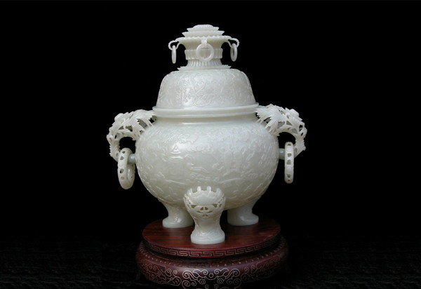 “富贵天香”白玉薄胎炉玉质纯正、温润细腻,用料八十多公斤。