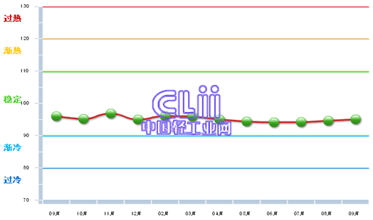 图2 2012年9月~2013年9月中轻家具行业景气指数变化态势