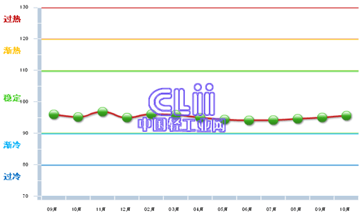 图2 2012年9月~2013年10月中轻家具行业景气指数变化态势