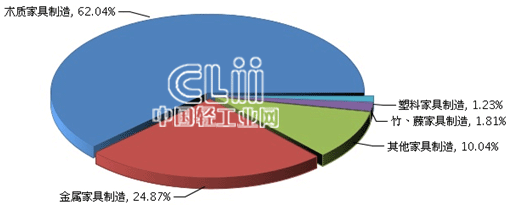 图4 2013年1~9月家具子行业规模以上企业累计利润总额占比情况