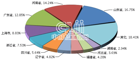 1~9月,家具行业累计利润居全国前十位地区的排名依然不变,依次是山东累计实现利润总额(下同)40.47亿元,占16.75%;河南累计实现34.40亿元,占14.24%;广东累计实现31.04亿元,占12.85%;上海累计实现21.33亿元,占8.83%,浙江累计实现18.19亿元,占7.53%;四川累计实现13.63亿元,占5.64%;辽宁累计实现11.64亿元,占4.82%;福建累计实现10.33亿元,占4.28%;河北累计实现8.92亿元,占3.69%;湖南累计实现7.11亿元,占2.94%(图6)。与1~8月相比,山东、河南、广东和湖南4个地区的占比都有不同程度的扩大。