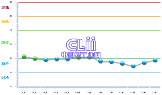 图1 2013年4月~2014年5月家具行业利润景气指数变化态势