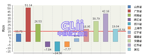 图7 2014年1~5月主要地区家具行业规模以上企业累计利润总额增速情况