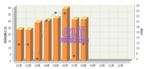 图2 2014年1~8月家具行业规模以上企业月度利润总额及增速