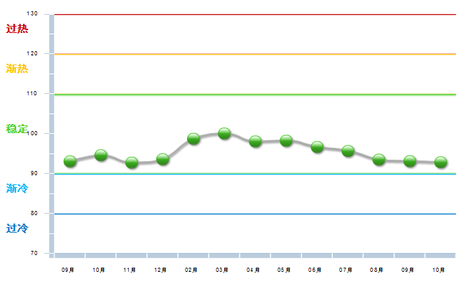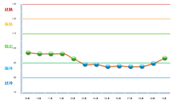 图2 2013.9----2014.10月工艺美术行业景气指数变化态势