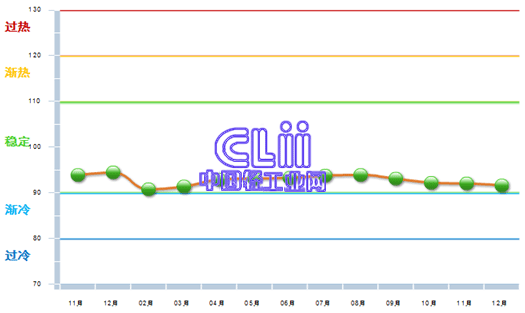 图1 2013年11月~2014年12月家具行业主营业务收入景气指数变化态势