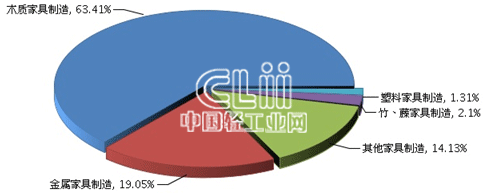 图4 2014年家具子行业规模以上企业累计主营业务收入占比情况