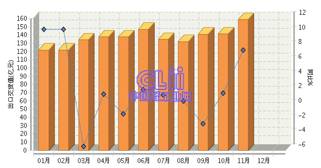 根据国家统计局公布数据:2015年1~11月,全国家具行业的累计出口交货值为1519.22亿元,同比增长3.30%。其中:11月份出口交货值同比增长7.67%。