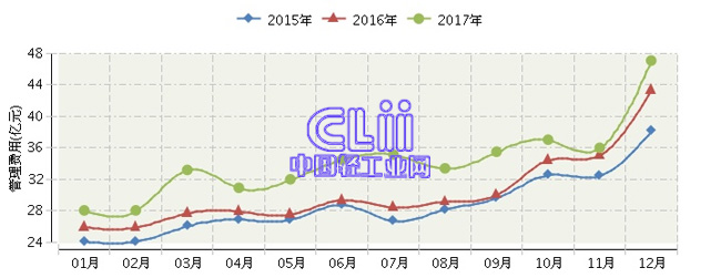 全国家具行业连续三年月度管理费用对比