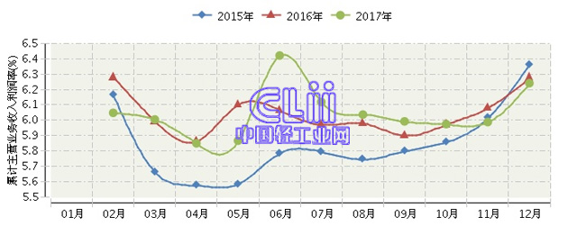 2017年1~12月全国家具行业累计主营业务收入利润率为6.24%