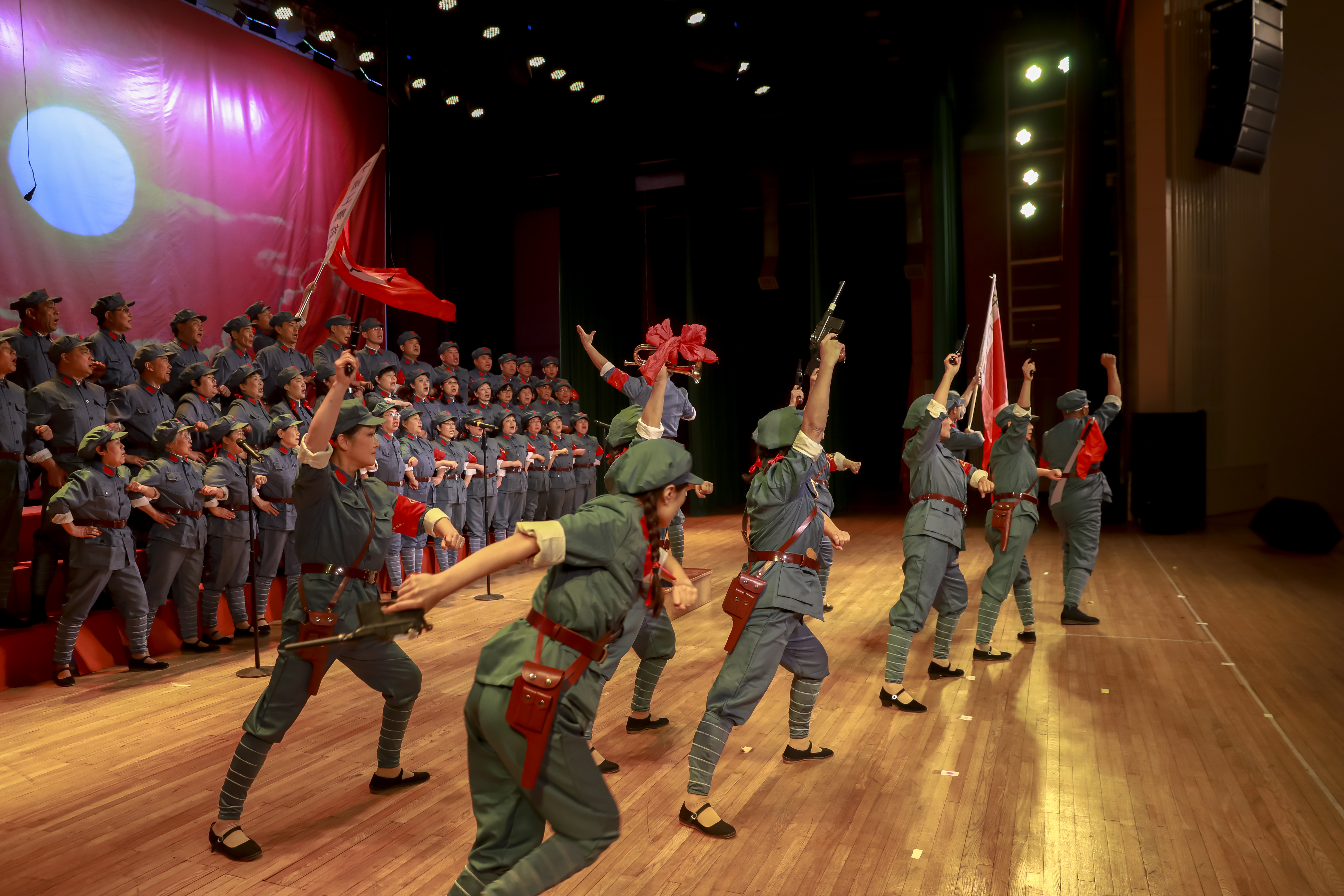 轻工离退休干部局、中国乐器协会等单位带来了大合唱《飞越大渡河》、乐器合奏《神话》等节目。中国皮革协会、中国食品报社、中国工业设计协会带来的原创节目配乐诗朗诵《追梦》、二重唱《民以食为天》、小合唱《领军力量,中国梦想》等节目赢得满堂喝彩。