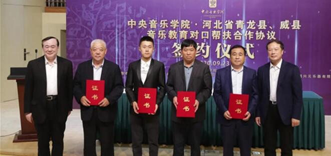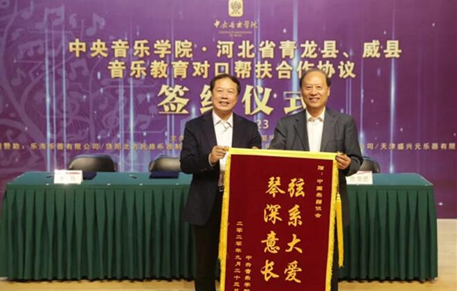 9月23日,中央音乐学院与河北省青龙满族自治县、威县音乐教育对口帮扶合作协议签约仪式在中央音乐学院举行。应中央音乐学院商请,中国乐器协会组织4家会员企业针对青龙县和威县的具体需求捐赠古筝、琵琶、二胡、笛子,共计300余件。