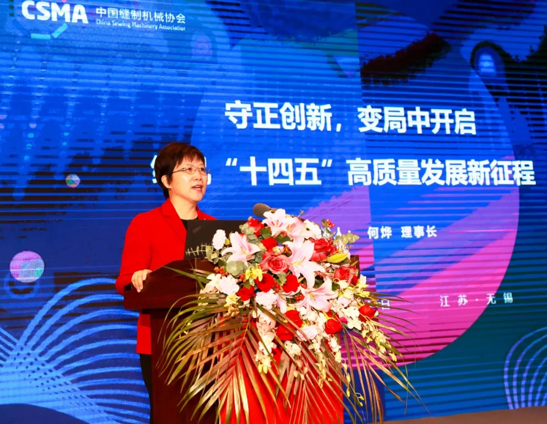 2020中国缝制机械行业大会暨十届五次理事会在无锡召开, 副会长、中国缝制机械协会理事长何烨出席会议时强调: