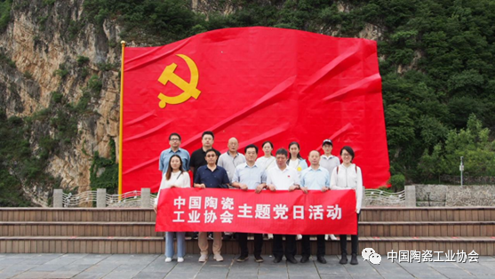 中国陶瓷工业协会党员及员工汇聚在巨幅党旗前