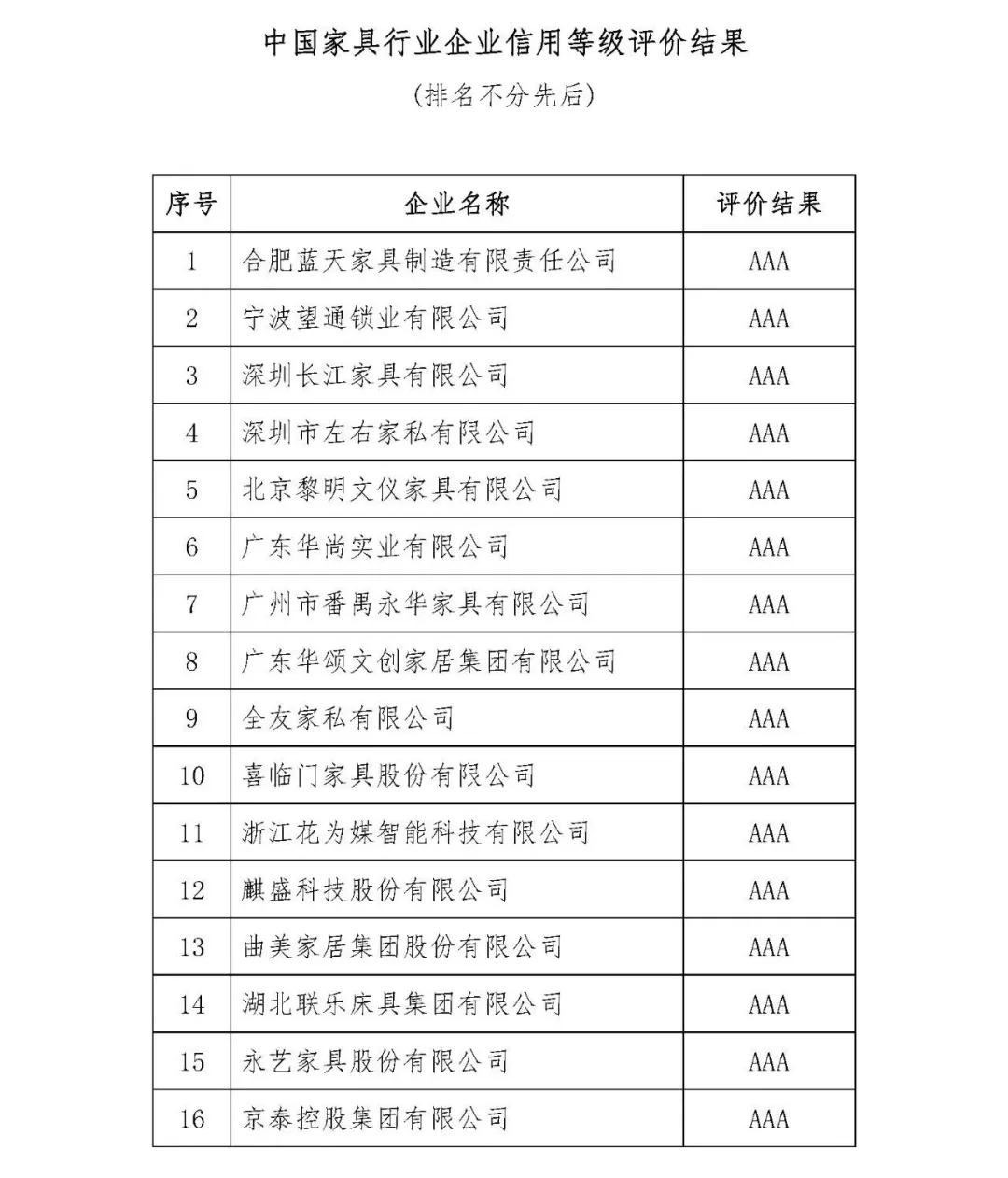 附:中国家具行业企业信用等级评价结果