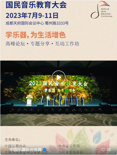 7月9日,由中国乐器协会、中央音乐学院、上海国展展览中心有限公司、人民音乐出版社、华夏未来文化艺术基金会联合主办的2023国民音乐教育大会在成都天府国际会议中心隆重开幕。