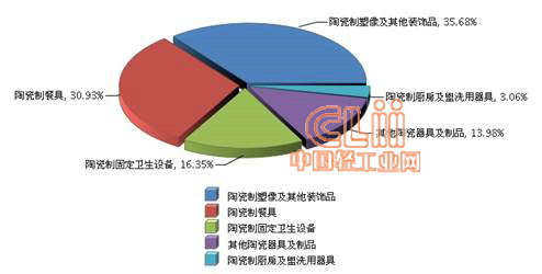 图2 2013年1~9月全国陶瓷行业累计出口额商品小类占比情况