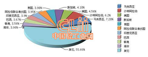 2013年1~12月全国陶瓷砖累计出口额贸易国占比情况