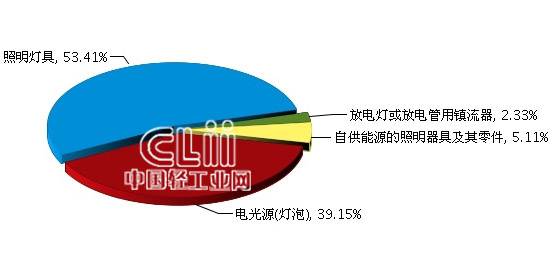 2013年福建照明行业累计出口额子行业占比情况
