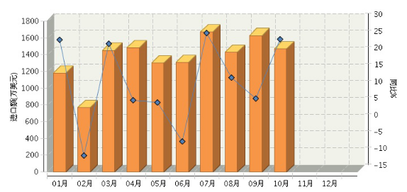 图:2013-2015年10月我国钢琴进口额月度走势对比