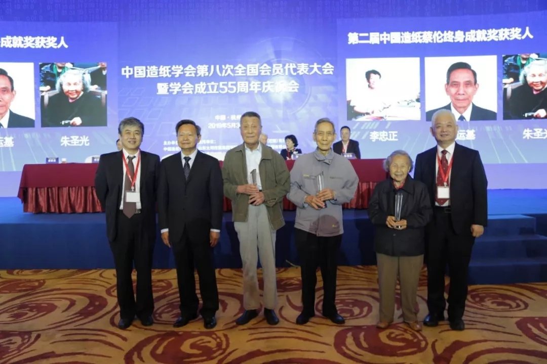 在5月30日举行的中国造纸学会第八次全国会员代表大会暨学会成立55周年庆祝会上,中轻集团中国制浆造纸研究院有限公司朱圣光(91岁)、中国中轻国际工程有限公司黄运基(86岁)两位前辈专家荣获中国造纸蔡伦终身成就奖。