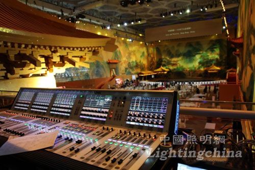 值得一提的是,此次活动第一次在国内的重要活动中使用了大功率全色激光器,在舞蹈《千手观音》中,灯光和烟雾的配合展现了时光隧道的动态梦幻效果;另外,考虑到安全性与便捷性,舞台上5个可移动亭子的背景光与顶光的设置,采用了电瓶供电及无线控制。灯光、视频与舞美的密切配合,使演出的风格、理念融合在一个整体之中,为包括舞台在内的宴会厅打造出流光溢彩的环境。