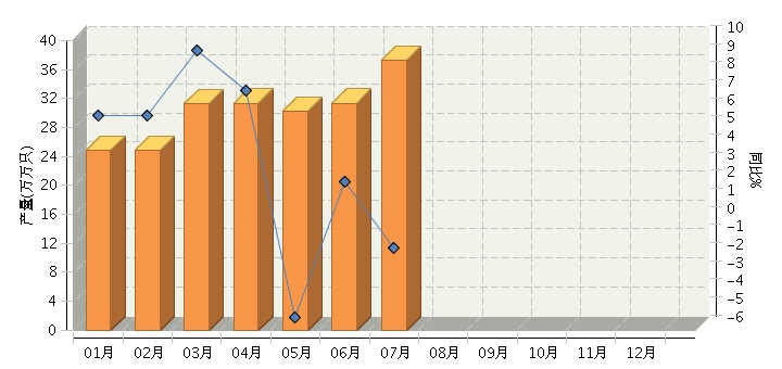 根据国家统计局公布数据,全国原电池及原电池组(折R20标准只)行业累计完成产量216.66亿只,同比增长1.71%。其中:7月份完成产量7月份完成产量37.3亿只,同比下降1.44%。2014年全国原电池及原电池组行业月度产量及同比如下图所示。