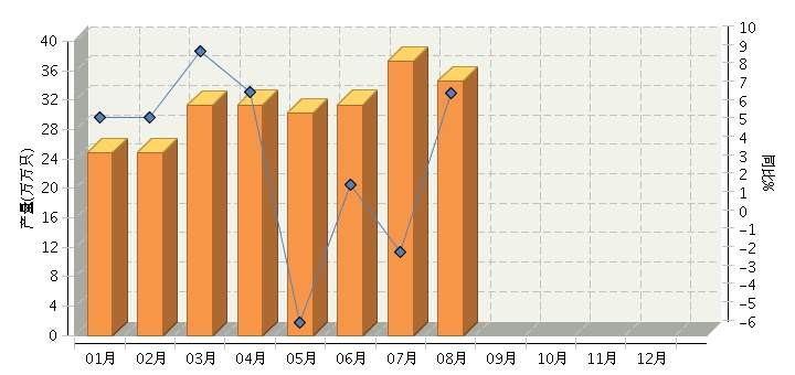 根据国家统计局公布数据,全国原电池及原电池组(折R20标准只)行业累计完成产量246.89亿只,同比增长-0.67%。其中:8月份完成产量34.51万万只,同比增长7.18%。2014年全国原电池及原电池组行业月度产量及同比如下图所示。