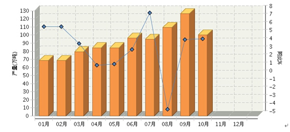 图 2014年1月~10月全国罐头月度产量及同比