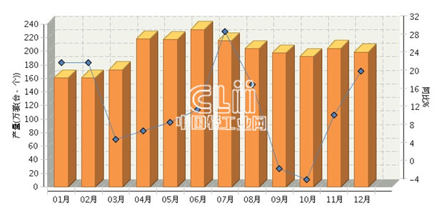 2014年,河南灯具及照明装置累计产量2376.66万套,同比增长11.98%。其中: 12月份产量198.92万套,同比增长21.53%。