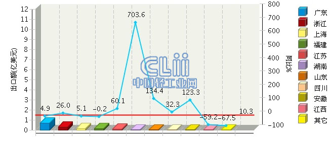 2015年一季度,全国照明行业对澳大利亚累计出口额1.39亿美元,同比增长10.26%。出口区域排在前五位的依次是广东、浙江、上海、福建和江苏。其中:广东完成累计出口额0.69亿美元(占49.5%),同比增长4.94%;浙江完成累计出口额0.29亿美元(占21.16%),同比增长25.95%。