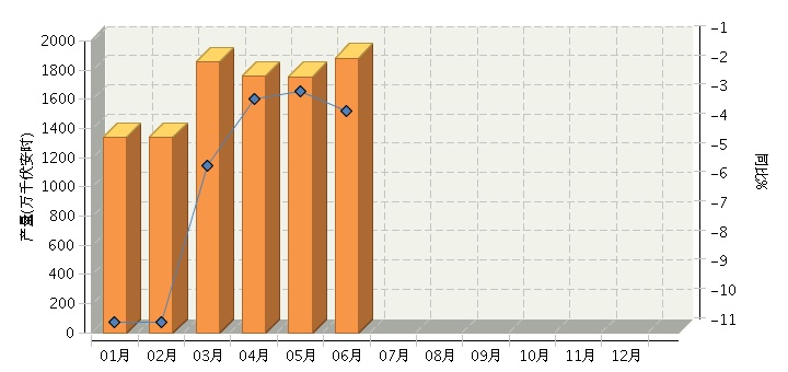 2015年6月全国铅酸蓄电池产量同比下降3.39%