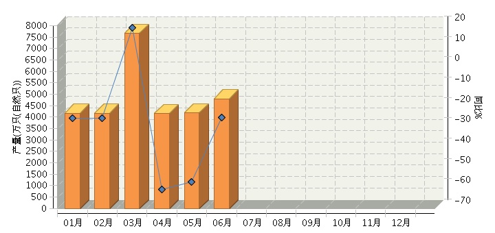 根据国家统计局公布数据,2015年1~6月全国碱性蓄电池行业累计完成产量同比增长-19.78%。其中:6月份完成产量同比增长-25.35%。2015年全国碱性蓄电池行业月度产量及同比如下图所示。