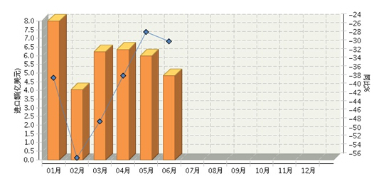 上半年,全国食品行业累计完成进口额35.46亿美元,同比下降39.46%。其中:1月份完成进口额8亿美元,同比下降37.05%2月份完成进口额4.04亿美元,同比下降55.57%3月份完成进口额6.23亿美元,同比下降47.16%4月份完成进口额6.36亿美元,同比下降36.62%5月份完成进口额5.99亿美元,同比下降26.5%6月份完成进口额4.85亿美元,同比下降28.72%