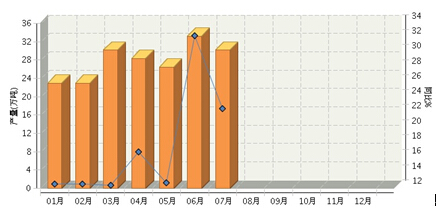 根据国家统计局公布数据,20151月~7月,全国糖果产量183.52万吨,同比增长9.52%。其中:1月份完成产量22.92万吨,同比增长12.52%2月份完成产量22.92万吨,同比增长12.52%3月份完成产量30.14万吨,同比增长12.38%4月份完成产量28.34万吨,同比增长16.85%5月份完成产量26.43万吨,同比增长12.69%6月份完成产量33.17万吨,同比增长32.3%7月份完成产量30.17万吨,同比增长22.65%2015年月度数据走势及同比增长情况如下图所示。