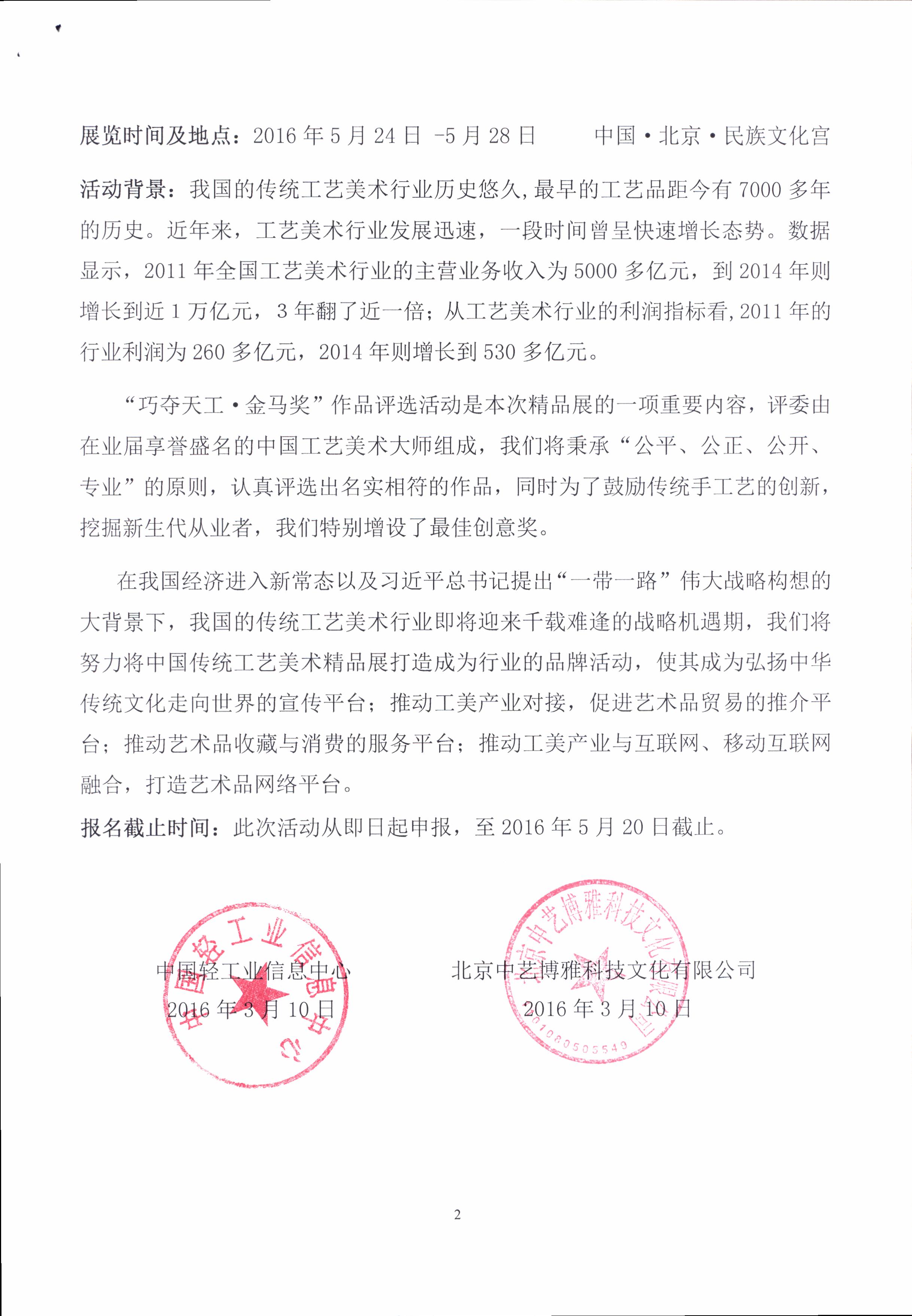 关于举办第五届(2016)中国传统工艺美术精品展暨“巧夺天工•金马奖”作品评选活动的通知
