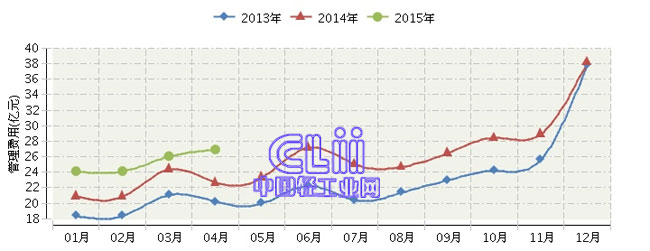 根据国家统计局公布数据:2015年1~4月,全国家具行业的累计管理费用为101.33亿元,同比增长12.46%。其中:4月份管理费用同比增长13.14%。