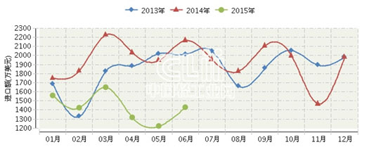 2015年1~6月,全国电光源零件行业累计完成进口额8609.48万美元,同比增长-27.95%。其中:6月份完成进口额 1430.66万美元,同比增长-34%。