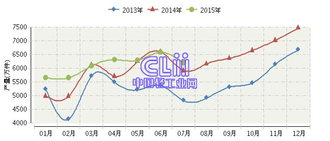 全国家具行业连续三年月度产量对比