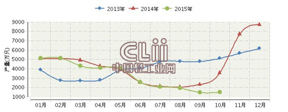 2015年1~10月,湖北白炽灯泡累计完成产量32549.00万只,同比增长-9.97%。其中: 10月份完成产量1526万只,同比增长-57.61%。