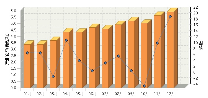 根据国家统计局公布数据,2015年1~12月,全国锂离子电池行业累计完成产量同比增长3.04%。其中:12月份完成产量同比增长20.06%。2015年全国锂离子电池行业月度产量及同比如下图所示。