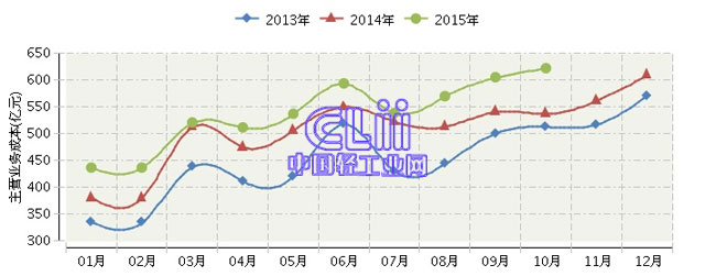 根据国家统计局公布数据:2015年1~10月,全国家具行业累计完成主营业务成本5367.55亿元,同比增长9.43%。其中:10月份主营业务成本同比增长13.48%。