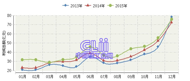 全国家具行业连续三年月度利润总额对比