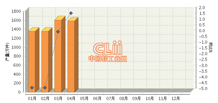 据国家统计局数据显示,2016年1~4月,全国陶瓷行业规模以上企业累计生产卫生陶瓷制品5893.72万件,同比下降1.57%。其中:4月份完成产量1582.92万件,同比增长1.83%。