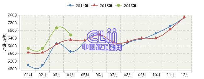 根据国家统计局公布数据:2016年1~4月,全国家具行业累计完成产量25693.48万件,同比增长7.37%。其中:4月份家具产量同比增长4.18%。