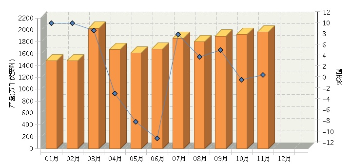 根据国家统计局公布数据,2016年1~11月全国铅酸蓄电池行业累计完成产量同比增长5.81%。其中:11月份完成产量同比增长1.56%。2016年全国铅酸蓄电池行业月度产量及同比如下图所示。