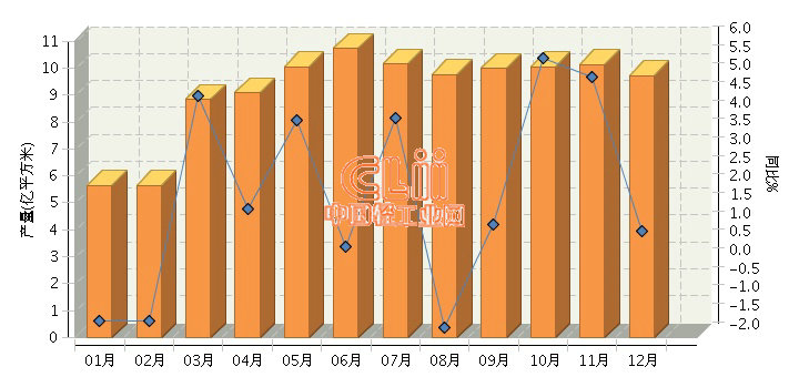 据国家统计局数据显示,2016年1~12月,全国规模以上企业累计生产陶瓷砖110.76亿平方米,同比增长1.81%。其中:12月份生产9.73亿平方米,同比增长0.87%。